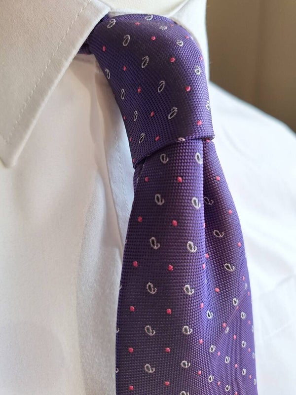 Measuring 146cm in length and with a blade of 8.5cm, the ABERTURA KILCREGGAN is a beautiful purple with small pink dots and a small Paisley design in white.