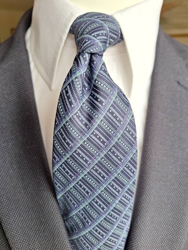 Grey, navy and blue make up the exquisite pattern, and with a length of 146cm and a blade of 9cm, the Abertura Aosta is a truly wonderful tie for your collection.