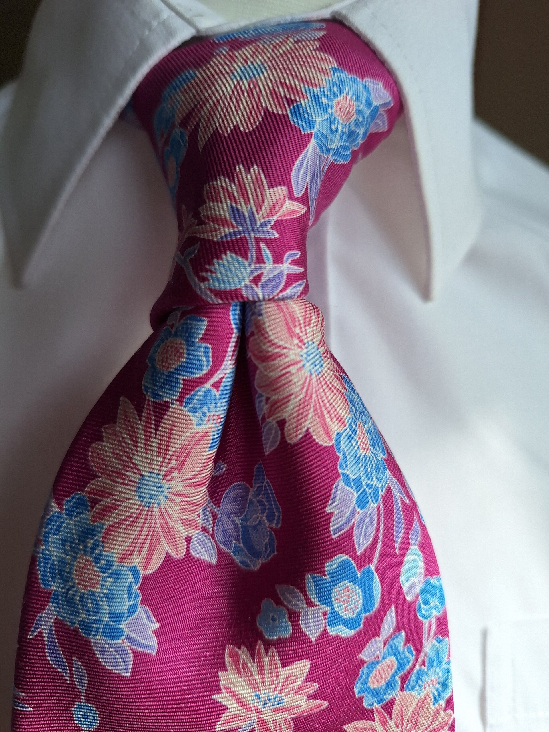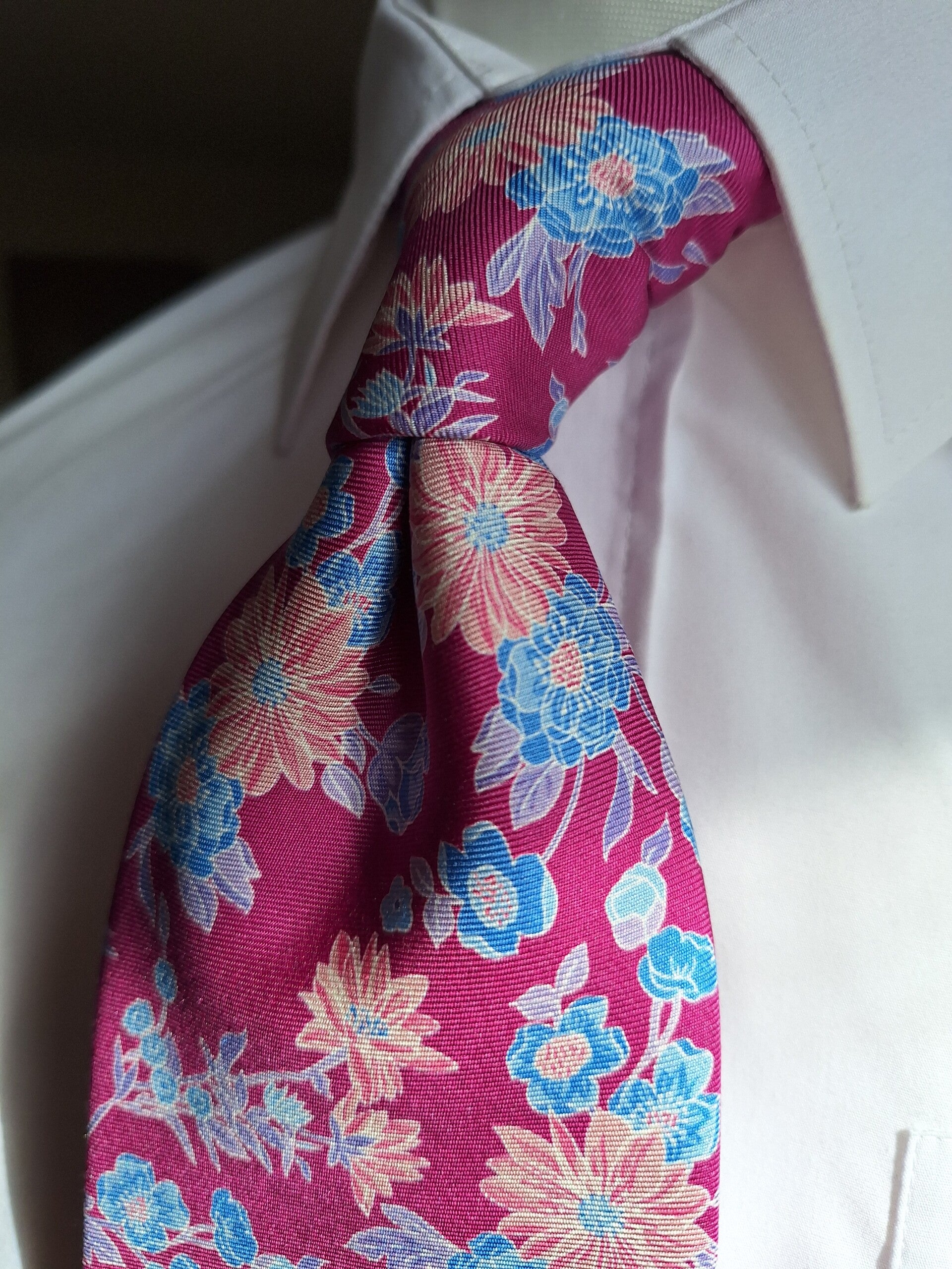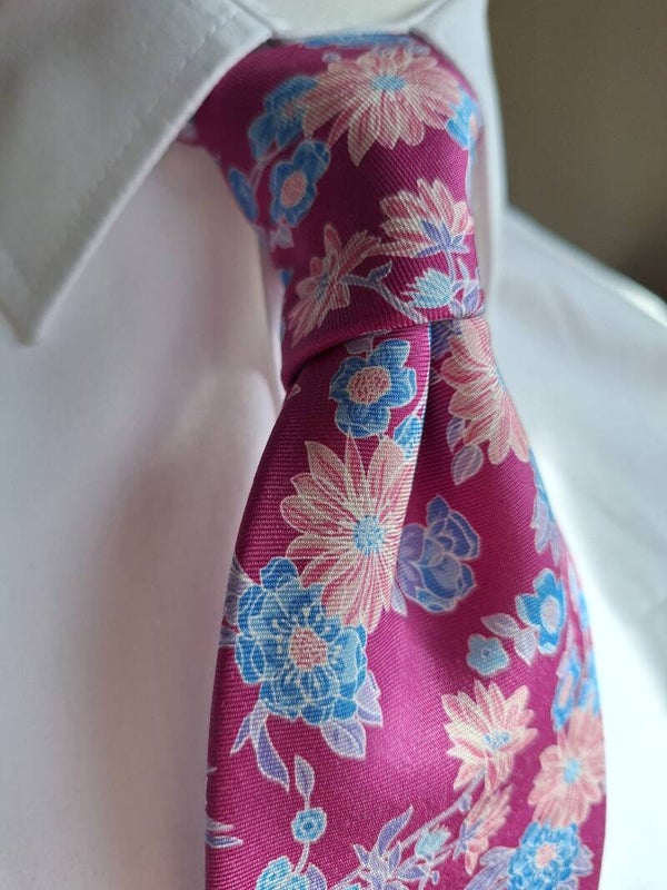 What a truly delightful tie our Abertura Shere is, with it's stunning floral design on a wonderful pink base.