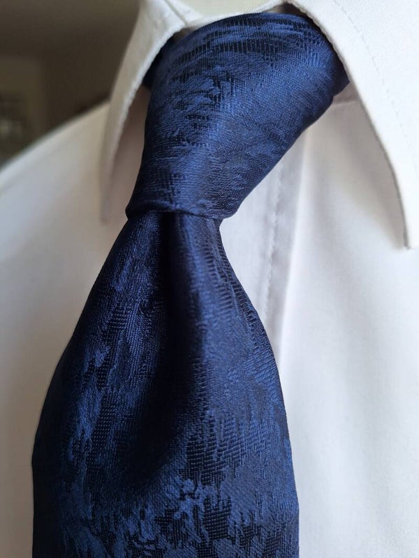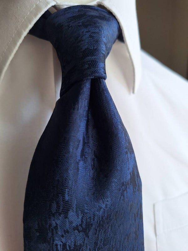 The Abertura Crossways is a beautiful navy silk tie where light creates a subtle movement on the tie skin.