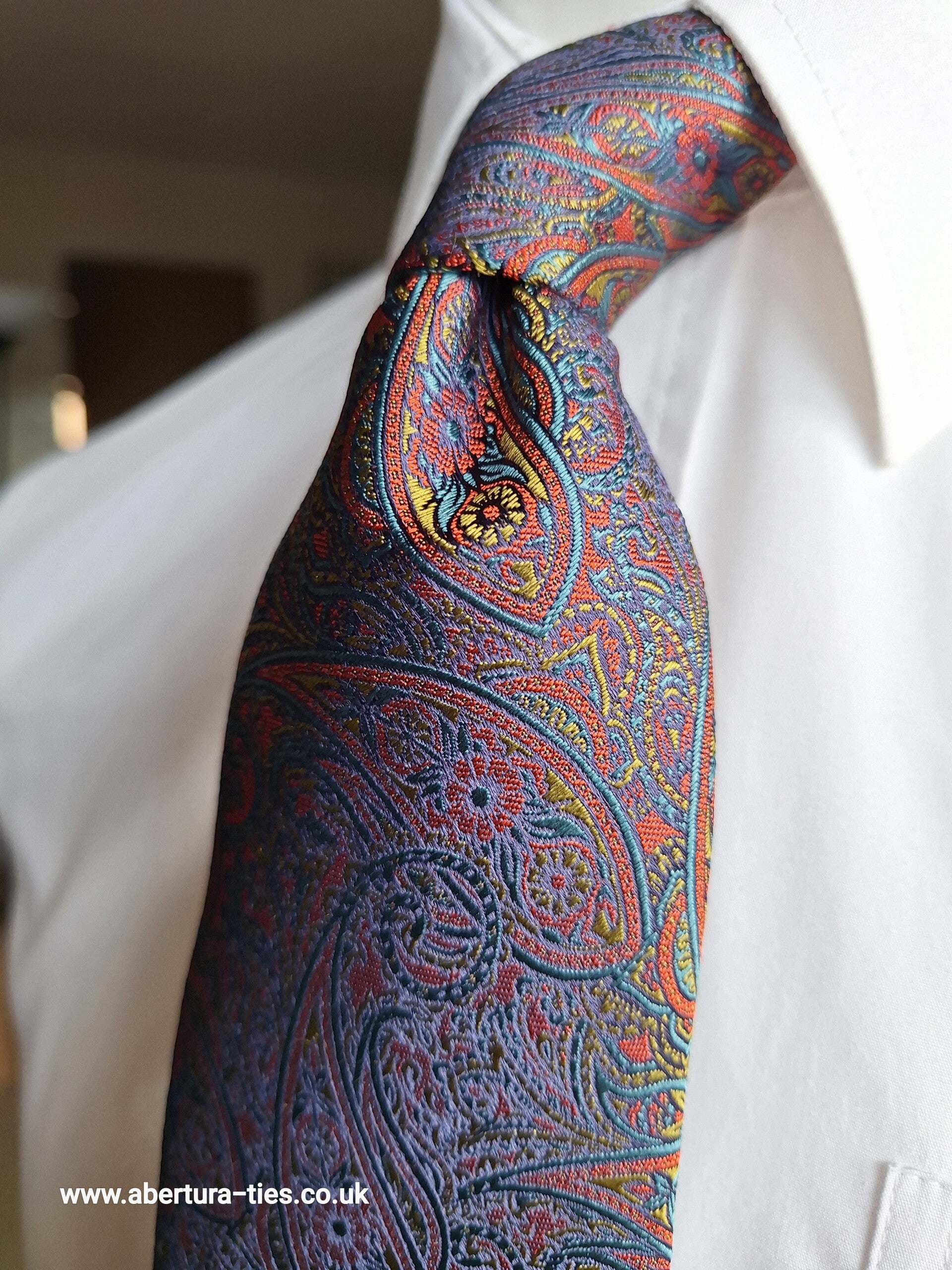 The Abertura Woodbridge is made of a silk produced by Vanners, one of the formerly best known UK silk manufacturers in the world, and what a truly spectacular tie this is.