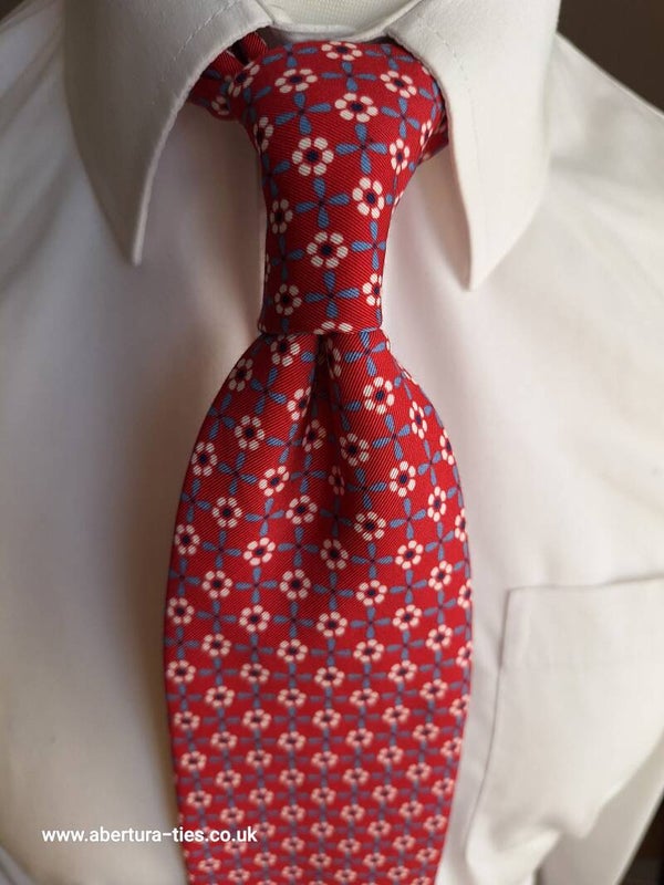 From the wonderful Italian brand, Boggi Milano, we are thrilled to bring you this delightful pink silk tie decorated with a delicate white, navy and blue floral pattern.