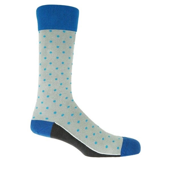 Add a spot of colour with our grey Pin Polka luxury men's socks. With its lively dots and contrasting cuff, heel and toe, the Pin Polka collection is a best seller and a must-have for any sock drawer. A timeless design and the perfect complement to everyday attire.