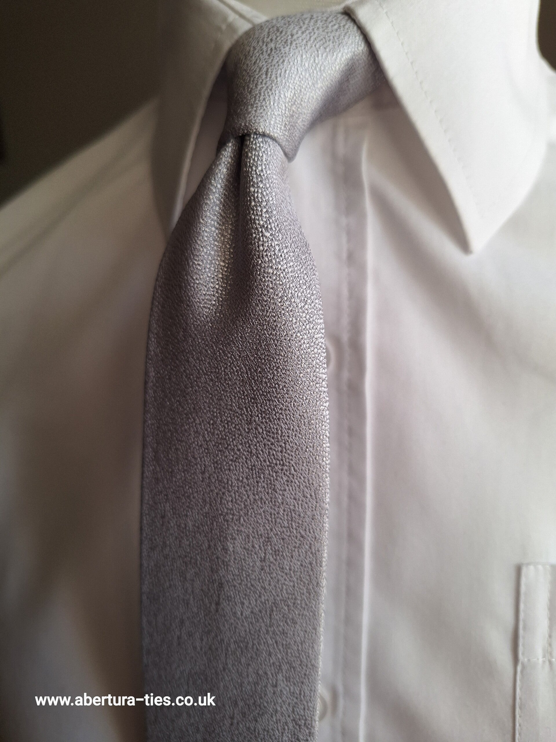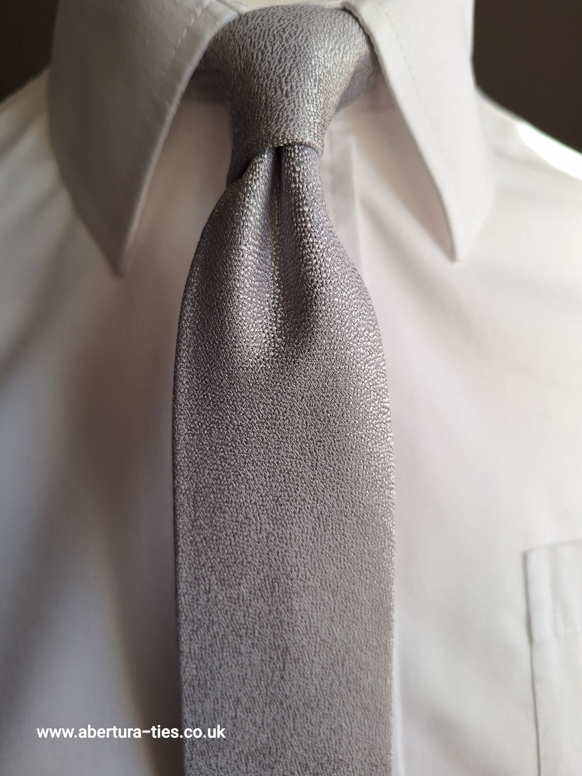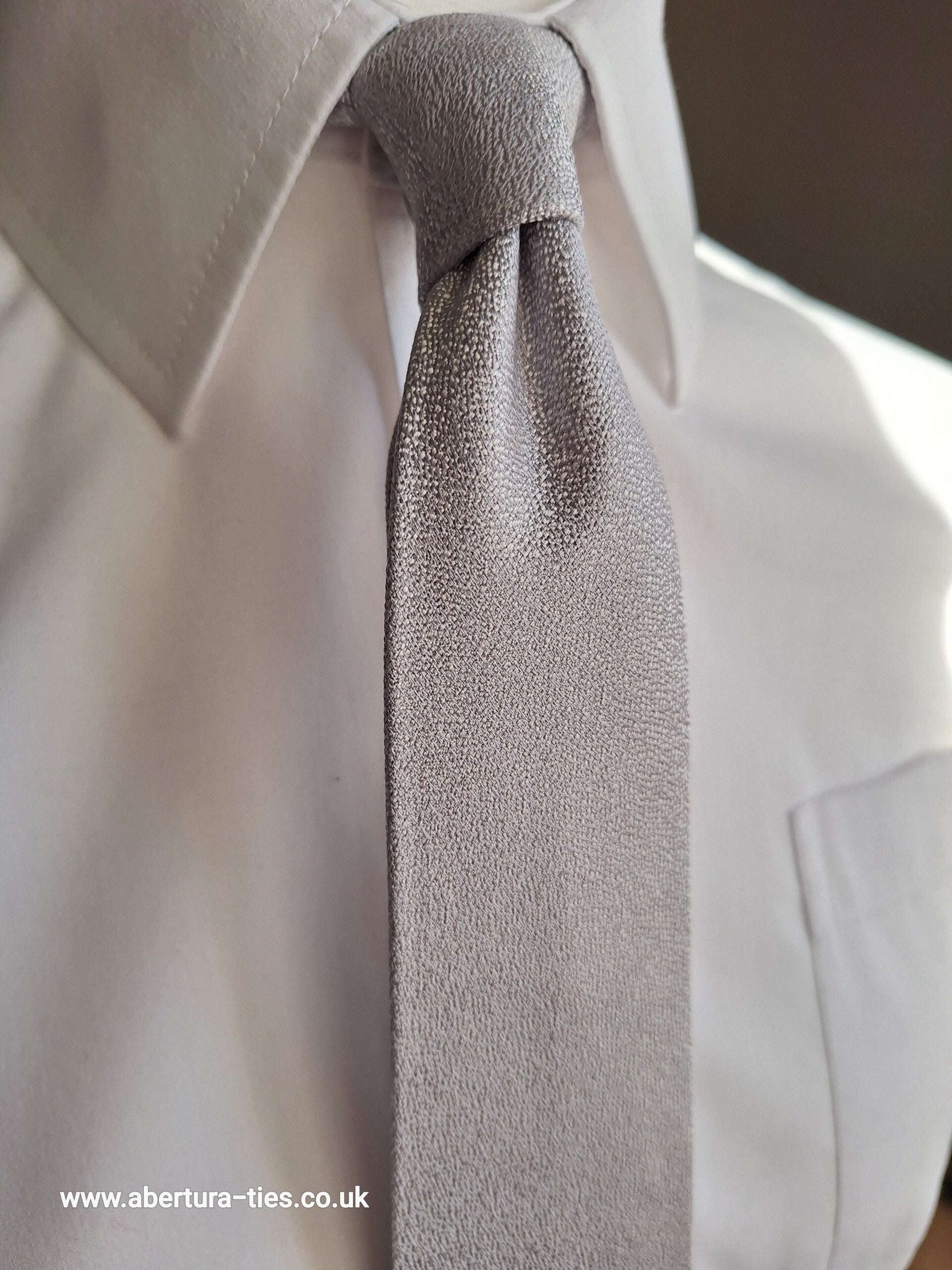 From the Hardy Amies Fashion House, we are delighted to bring this lovely silver silk tie with a 'rough look' design.