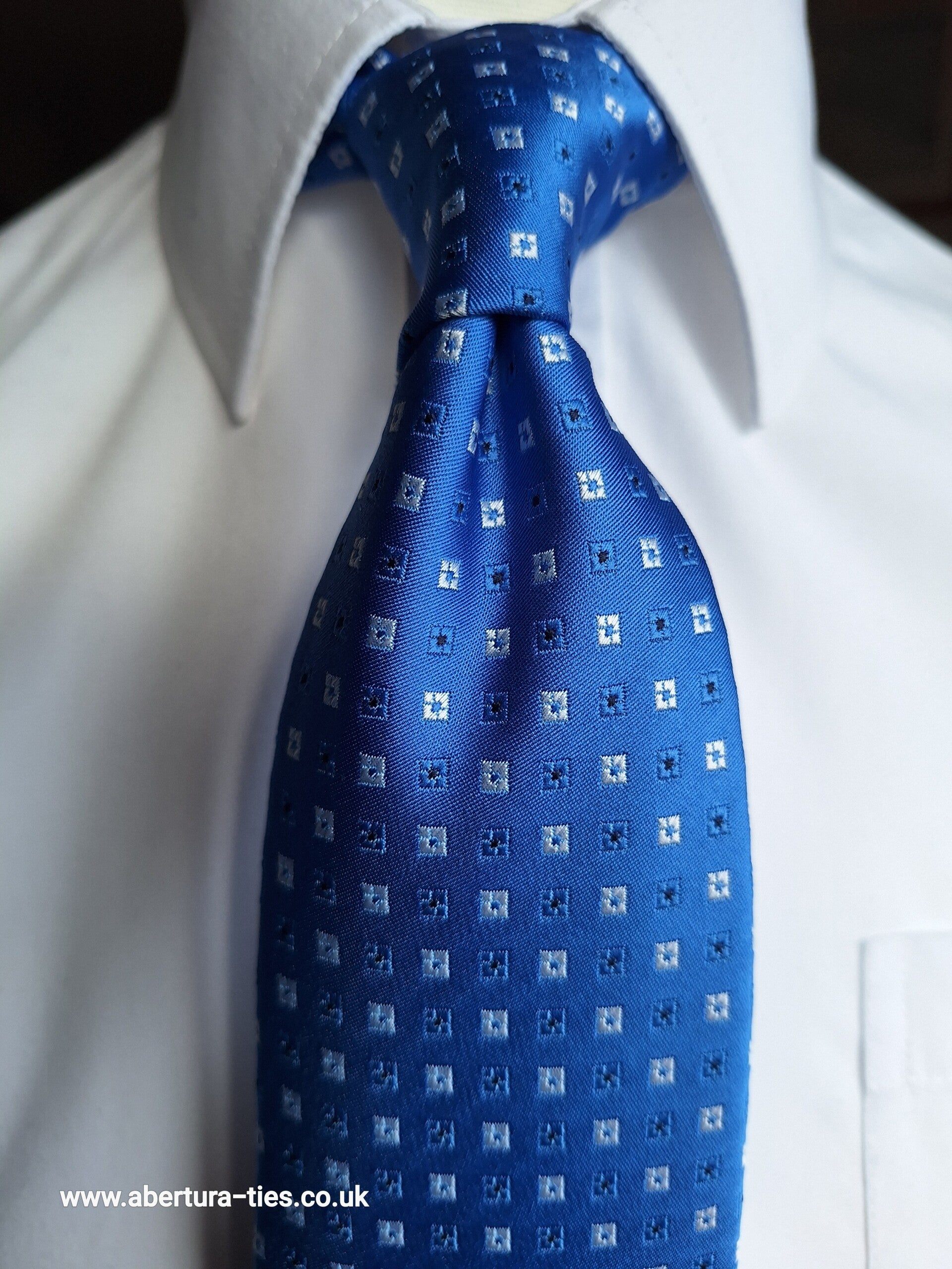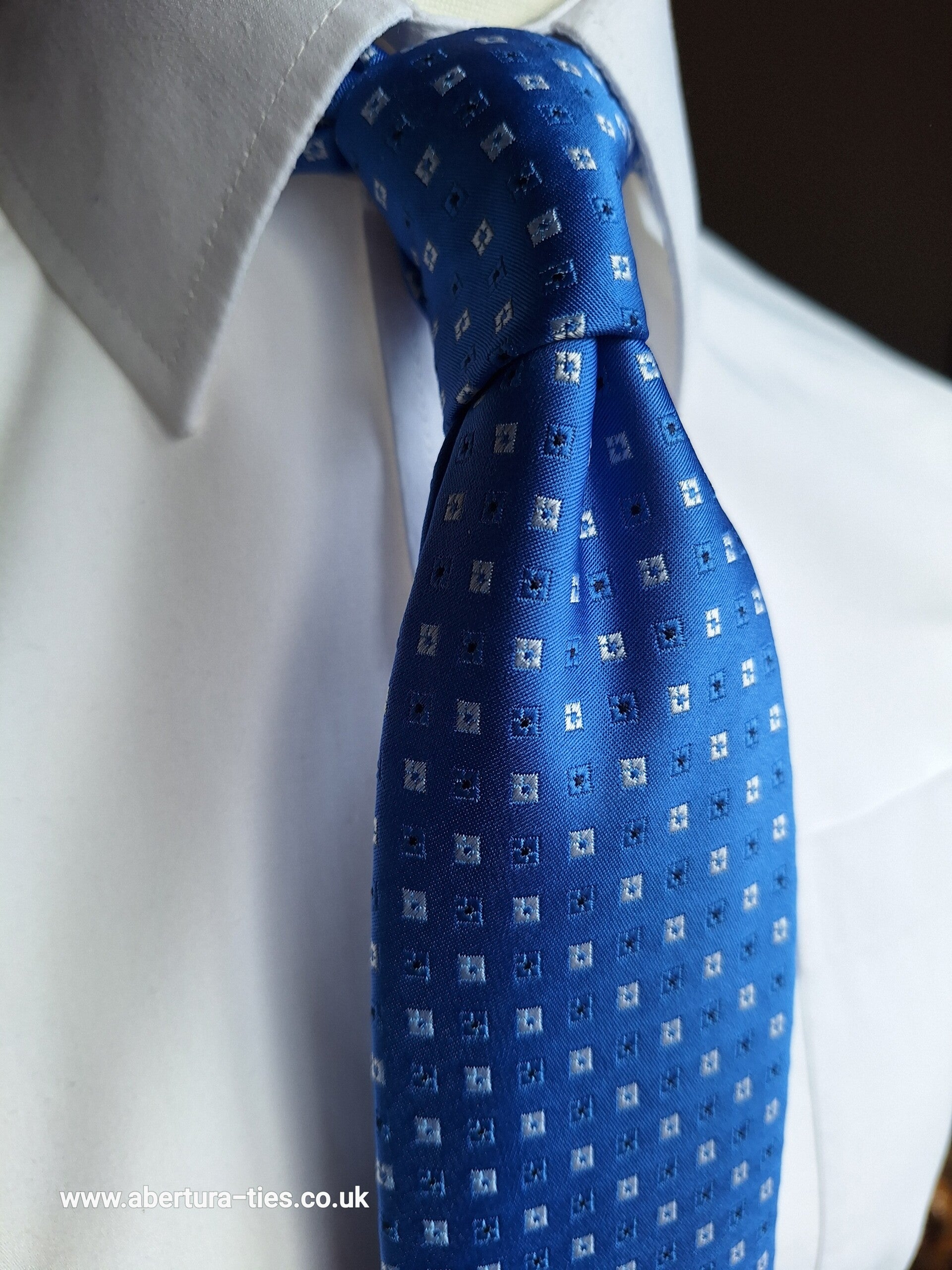 Measuring 152cm, with a blade of 7.5cm, this lovely blue, with subtle silver and black geometric pattern, really is a tie to upgrade any fit.