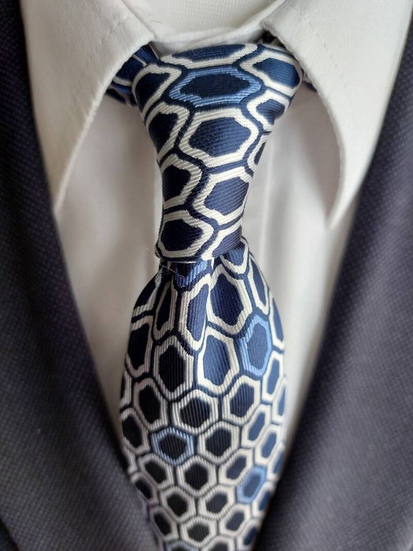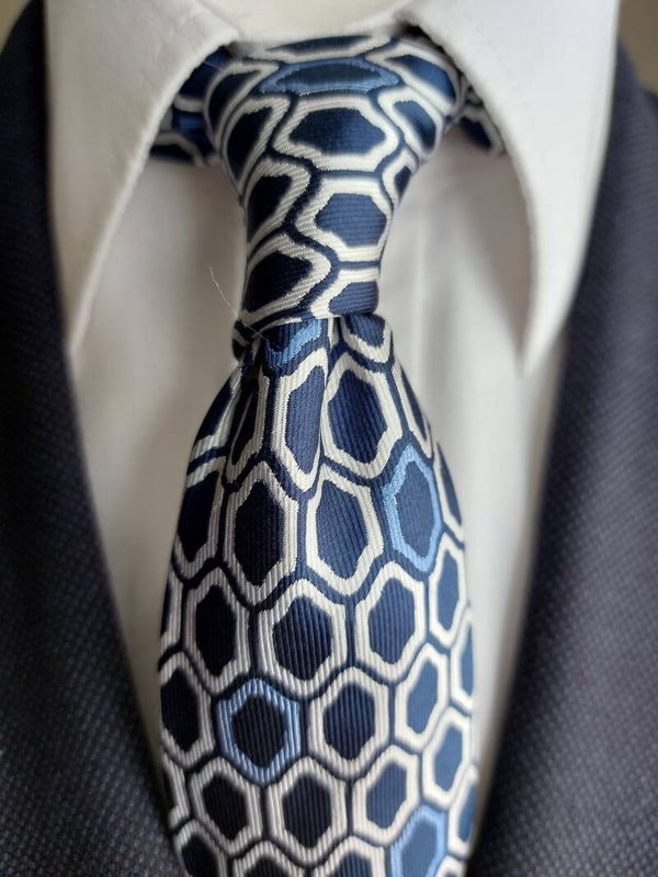 Geometric White and Blue on Navy Printed Design.