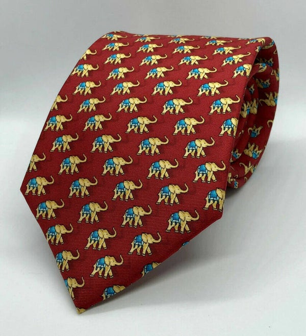 Red Hand Made Tie with Elephant Pattern