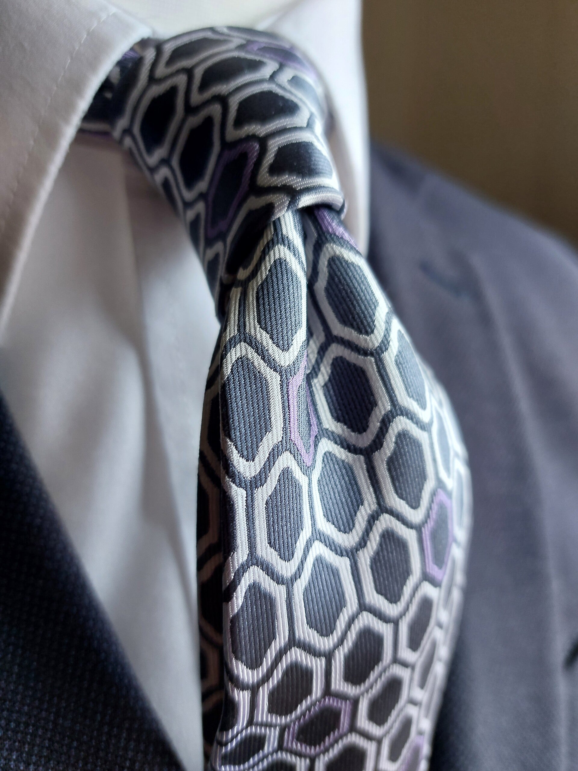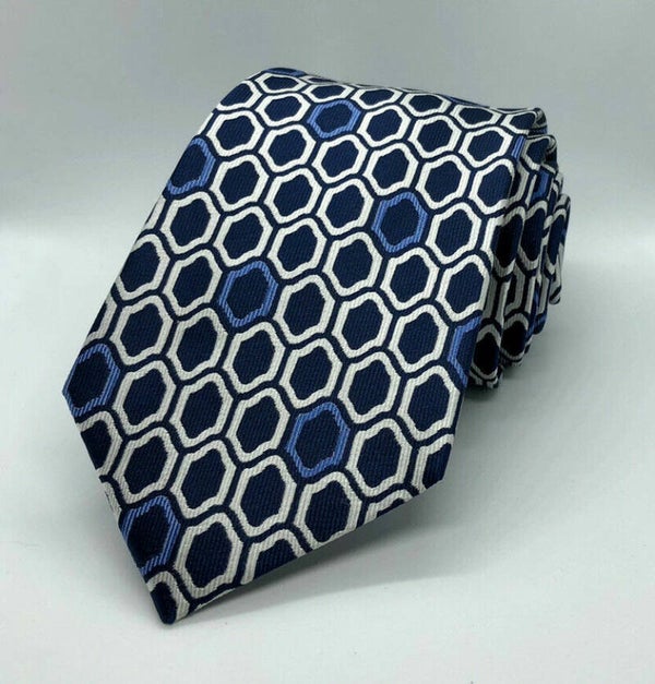 Geometric White and Pink on Navy Printed Design.