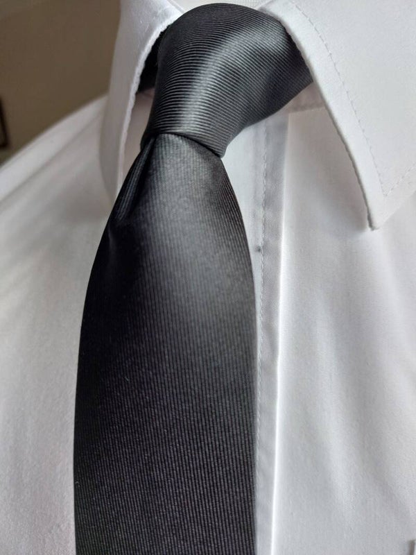 Pure Black Plain Woven Silk With Retro Silver Detailing