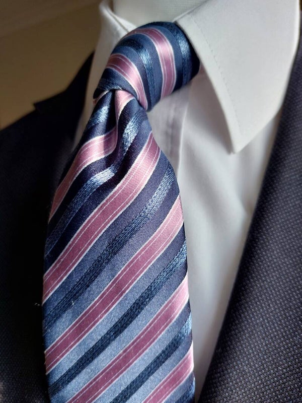 With a length of 146cm, and with a blade width of 8cm, this 100% British silk tie has stunning stripes of black, pink and silver, the Newmills is a real standout!